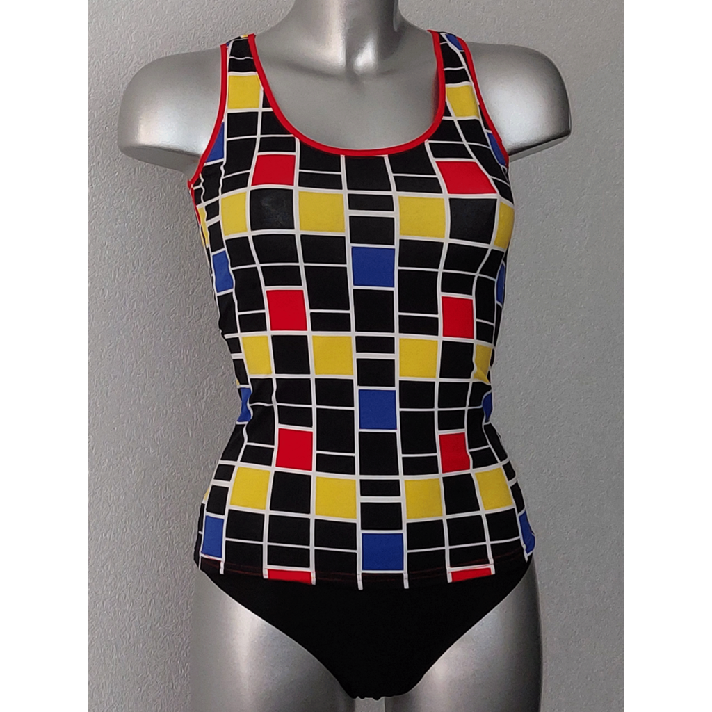 Uit de Sapph SALE collectie de cotton stretch top in de basis kleur zwart mt XS-36 of wit mt XS-36 of S-38 ,gecombineerd met expresion print.