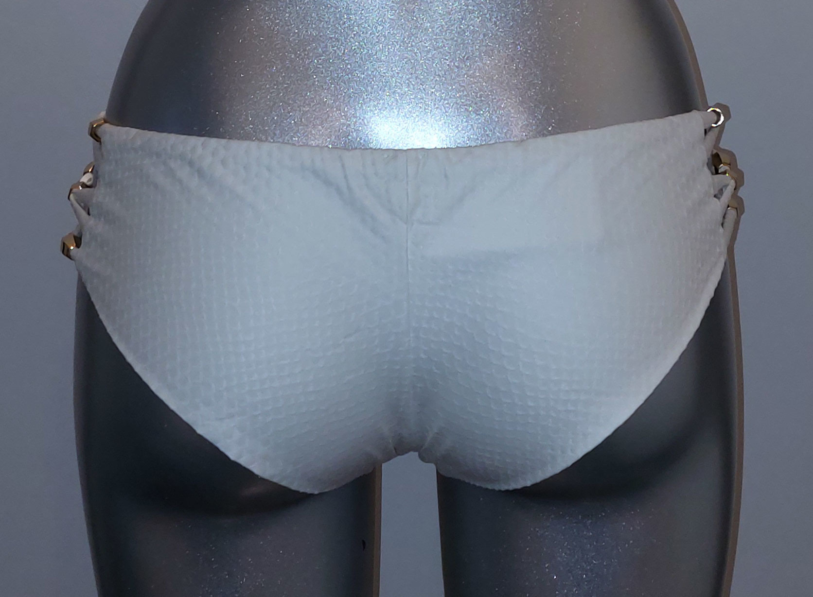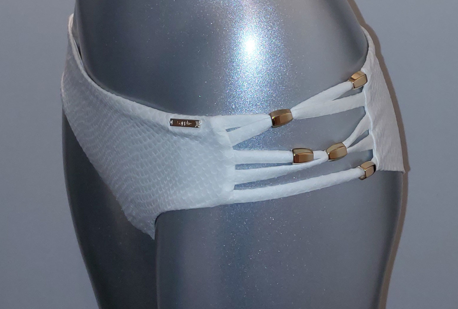 Uit de Sapph Beach collectie de Vanilla stijlvolle bikinislip in laag Cheeky Brazilian model, kleur Offwhite met ingeweven snakeprintje. Leverbaar in de maat S t/m XL.