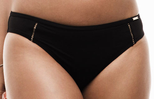 Uit de Sapph Beach collectie de stevige geweven microfaser Xana Beach bikinislip. Leverbaar in de maten S of XL Kleur zwart met klein detail aan zijpanden kleur beige.