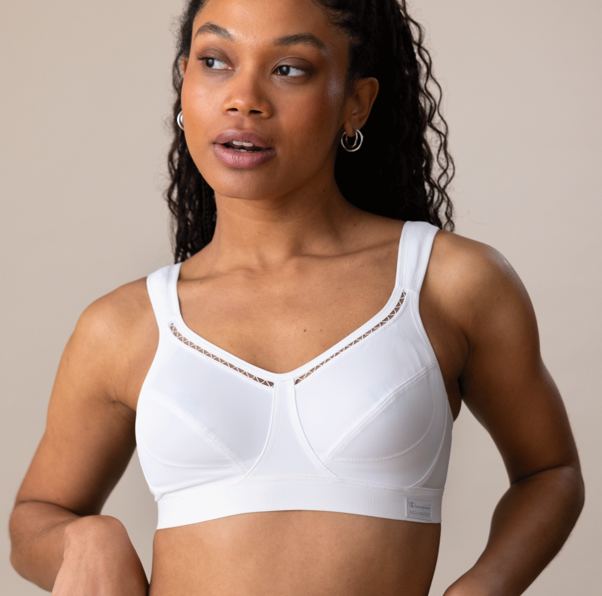 Comfortabele Shock Absorber Active Classic sport‑bh zonder beugel met tweedelige cups. Verkrijgbaar in wit en zwart in de maten B75 t/m E90 en F70 t/m G90. Met sportvoordeel: €5 vanaf €39,95 en €15 vanaf €99,95.