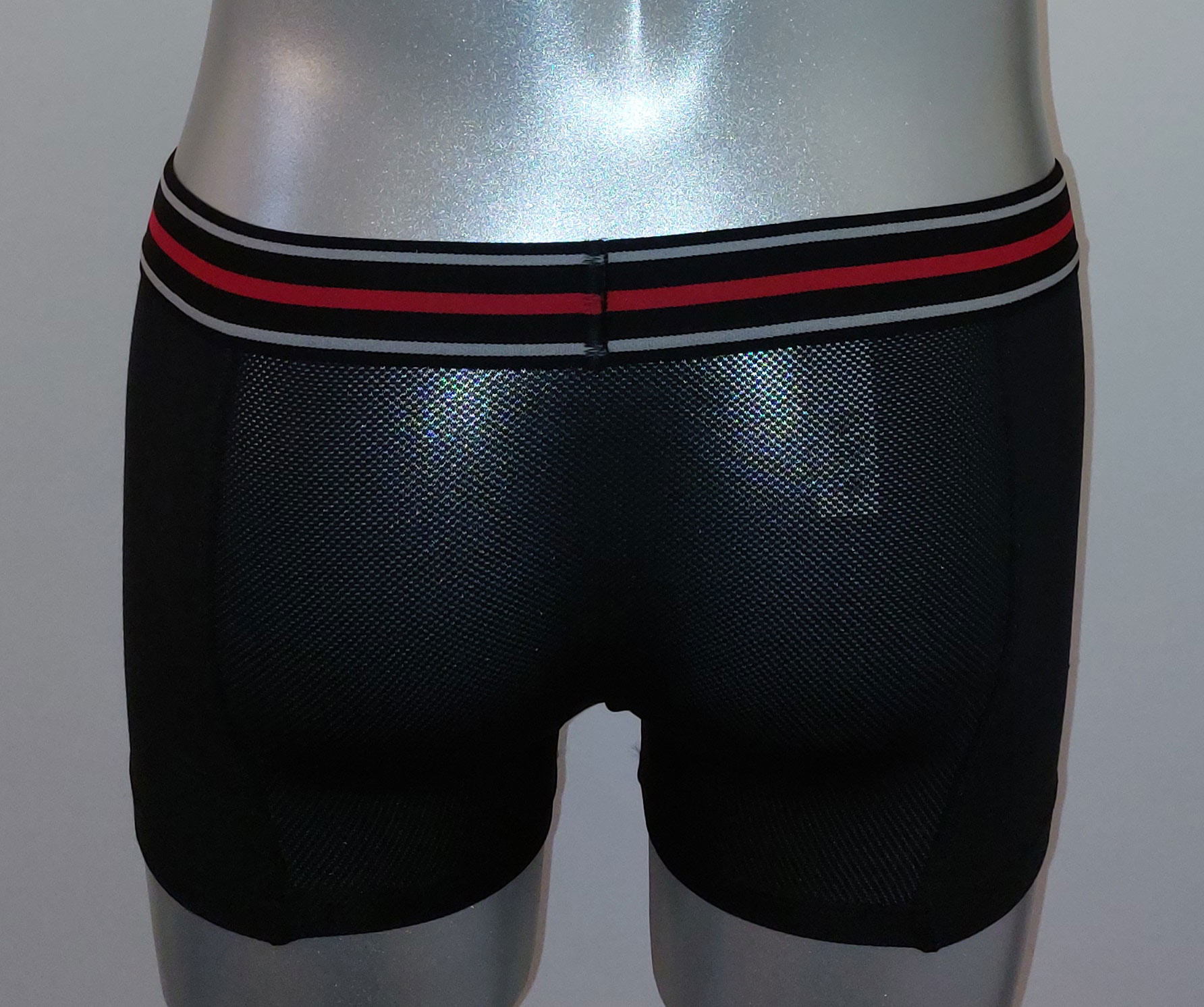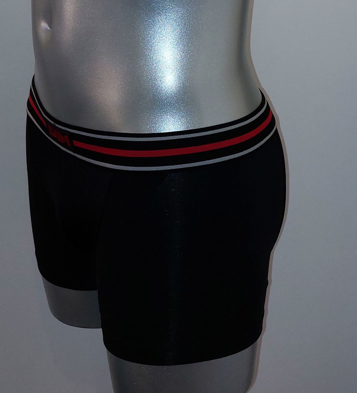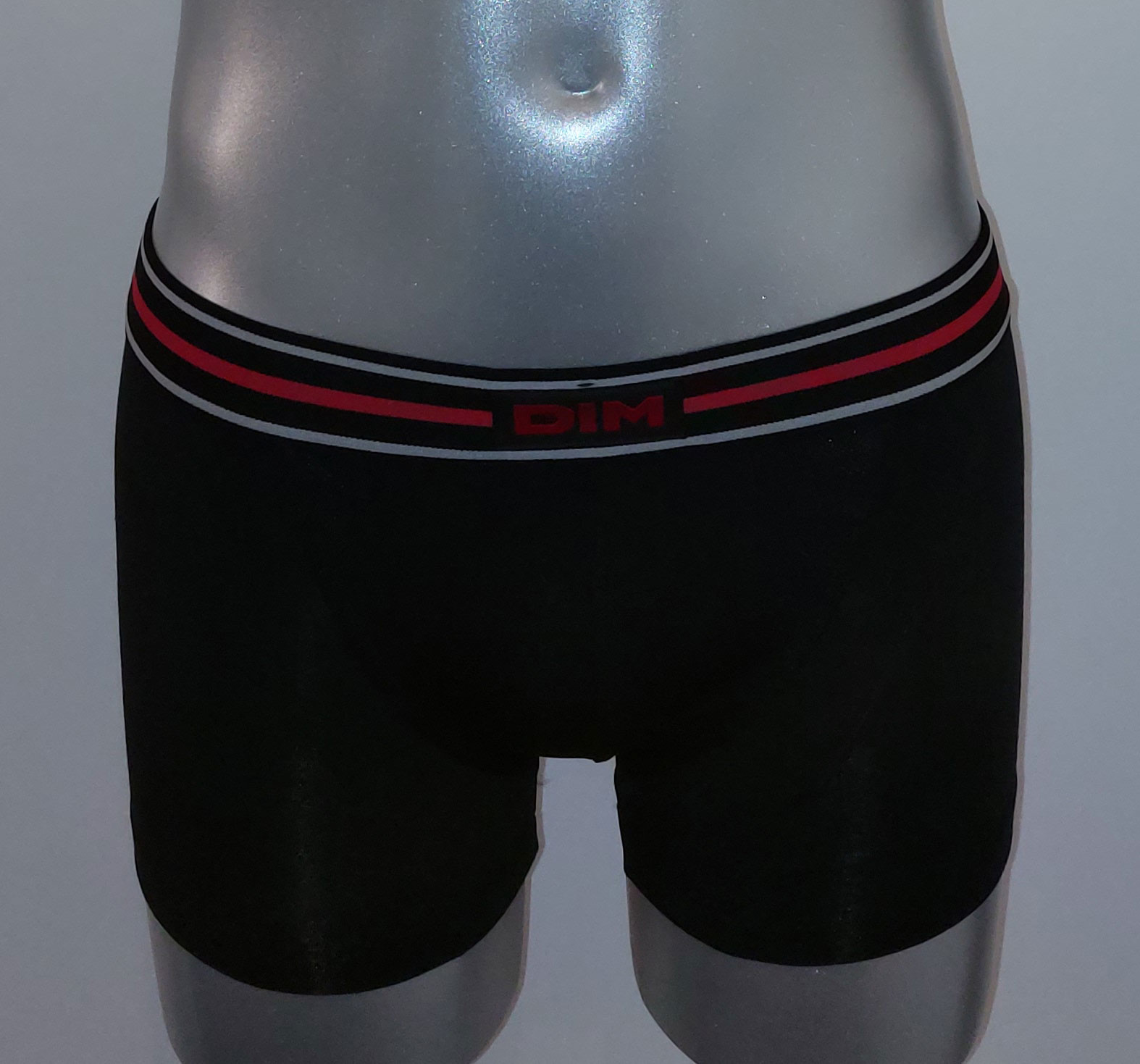 Uit de collectie van Dim de sport boxer met korte pijpjes basis kleur zwart met bies rood de mt M.