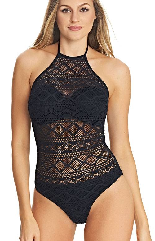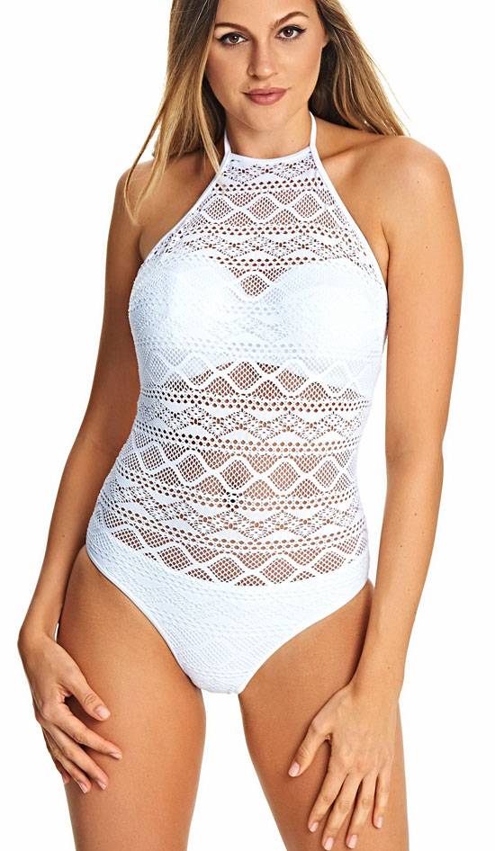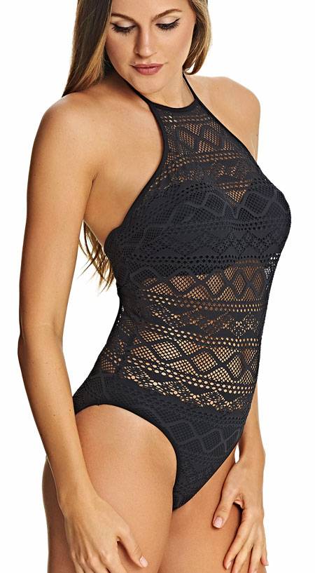 - Sundance badpak heeft een eigentijdse hoge neklijn met gehaakte Overlay.
