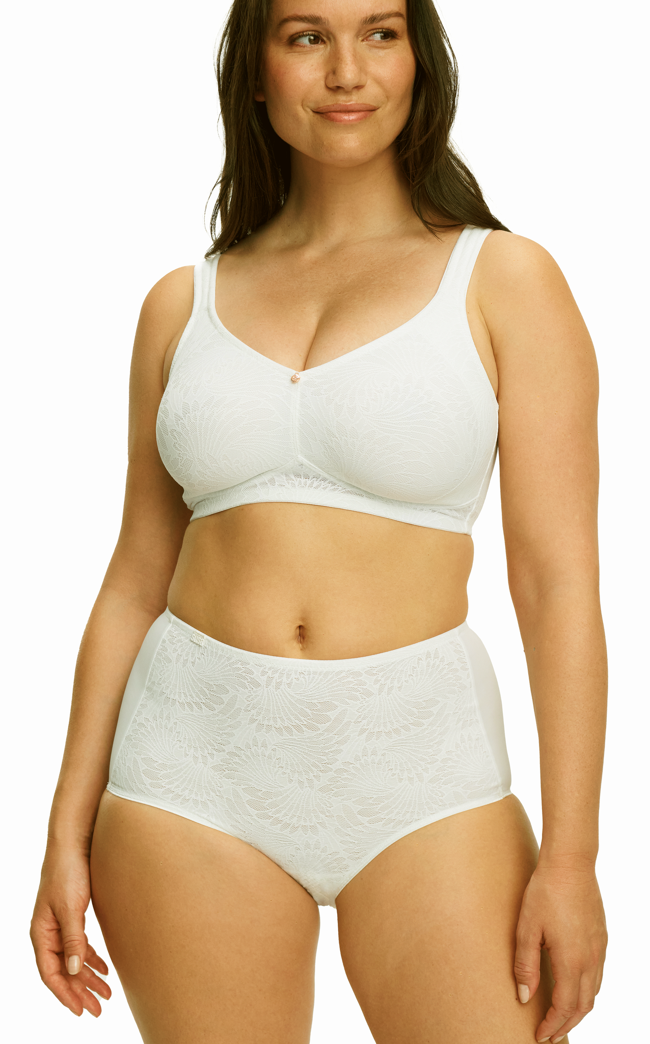 Uit de Susa Topsy Plus collectie de stevige Sevilla Bh zonder beugel en en naadloze molded cup. Kleur ivoor, gecombineerd met ingeweven borduursel, maten B80 t/m C100 & D70 t/m H100.