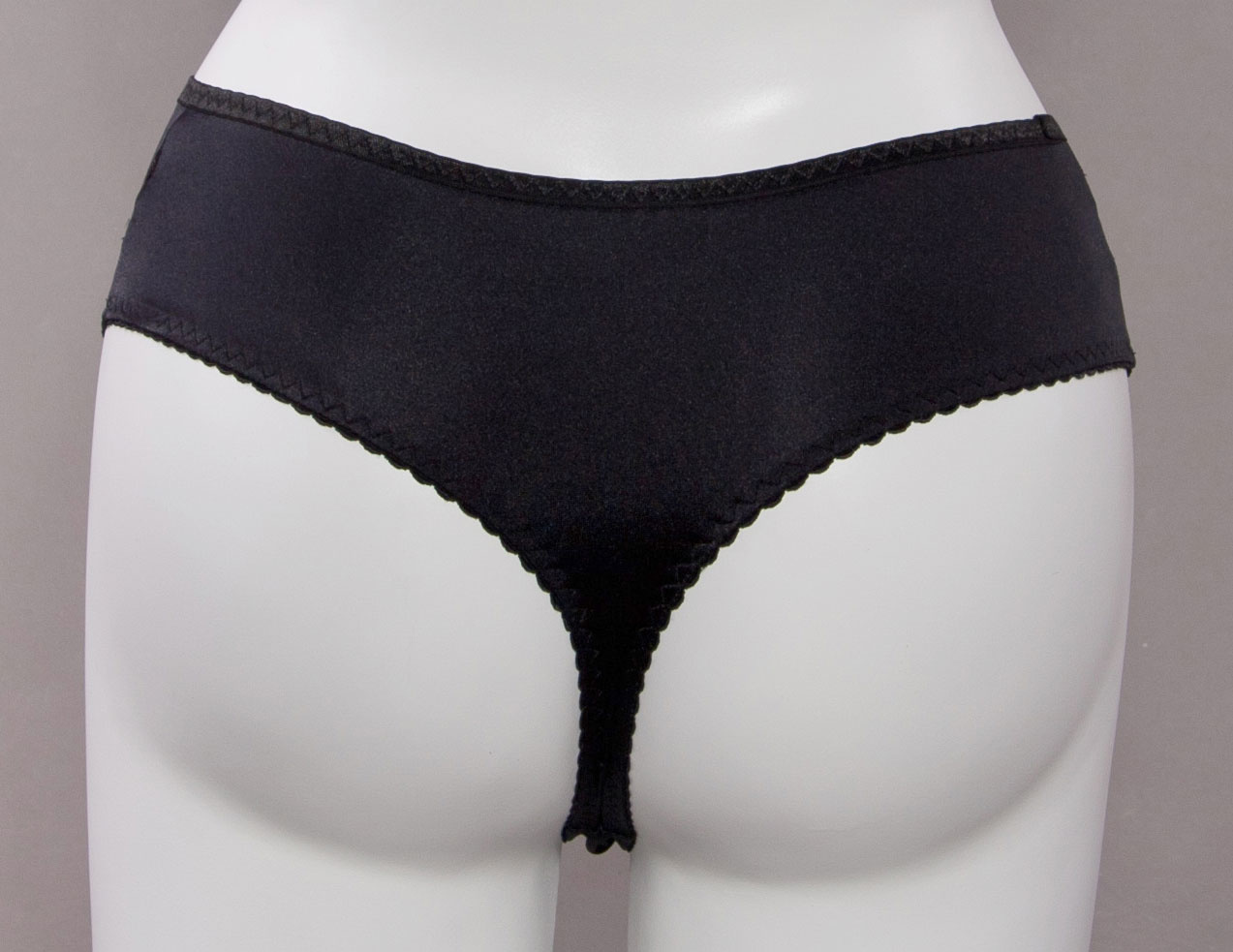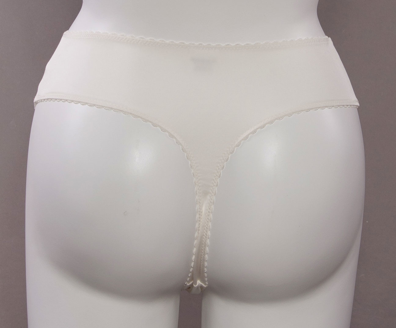 Uit de basis collectie van Syl Design de Maia microfaser hoge string.De kleur zwart of ivoor de maten 42 t/m 54.