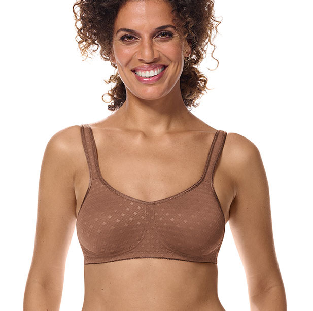Amoena Tiana zachte naadloze prothese Bh zonder beugel & comfort schouderbandjes, de opvolger van de Dianna Bh. De kleur mocha, in maten AA70 t/m F105.
