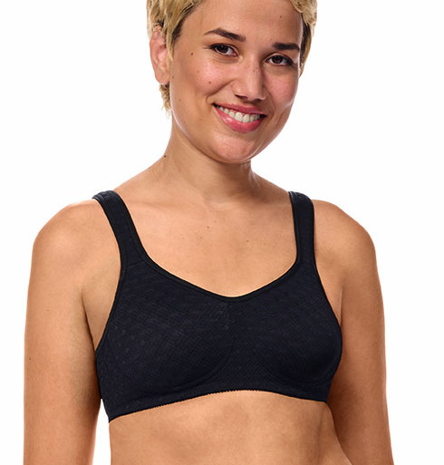 Amoena Tiana zachte naadloze prothese Bh zonder beugel & comfort schouderbandjes, de opvolger van de Dianna Bh. De kleur zwart, in maten AA70 t/m F105.