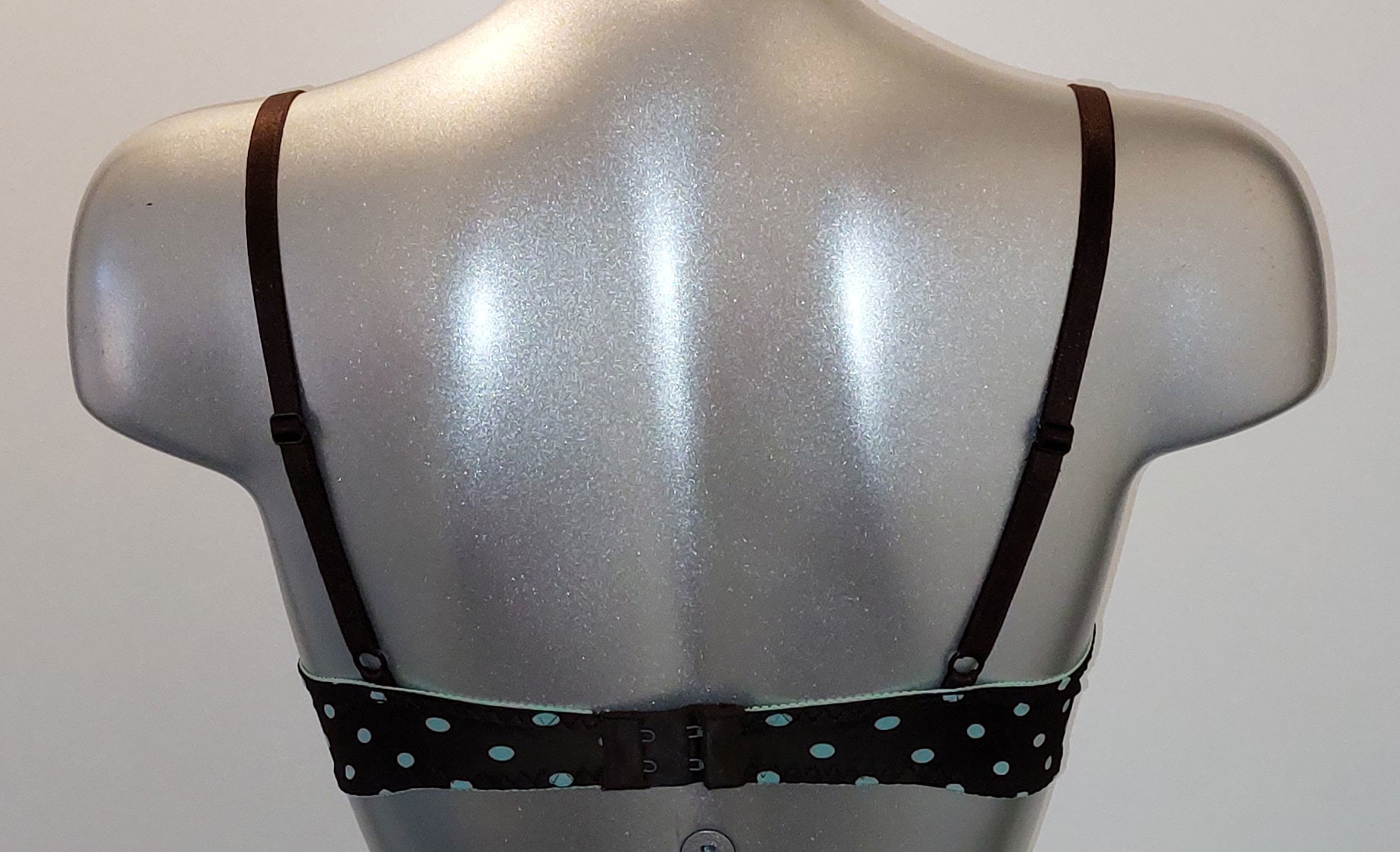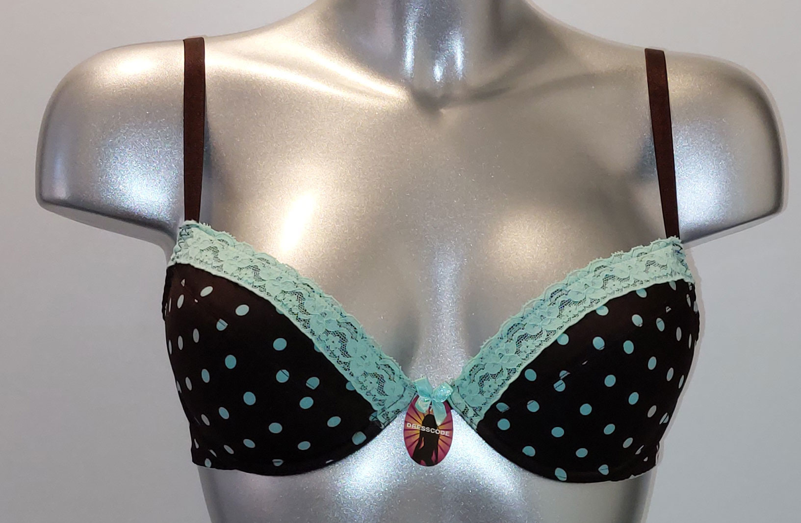 • De licht voorgevormde cups flexibel & zacht, met uitneembare paddings kleur bruin met print dots in kleur mintgroen.