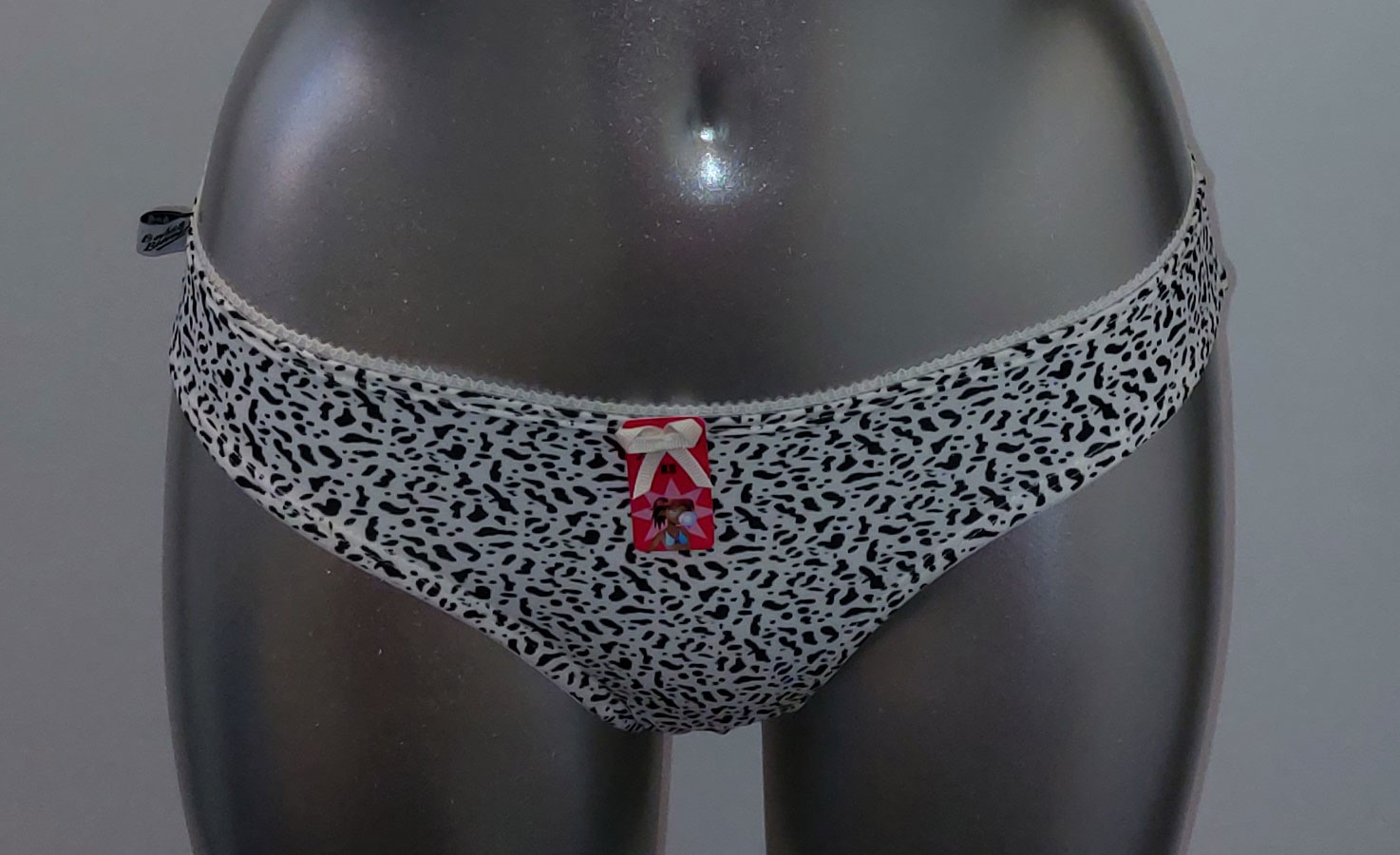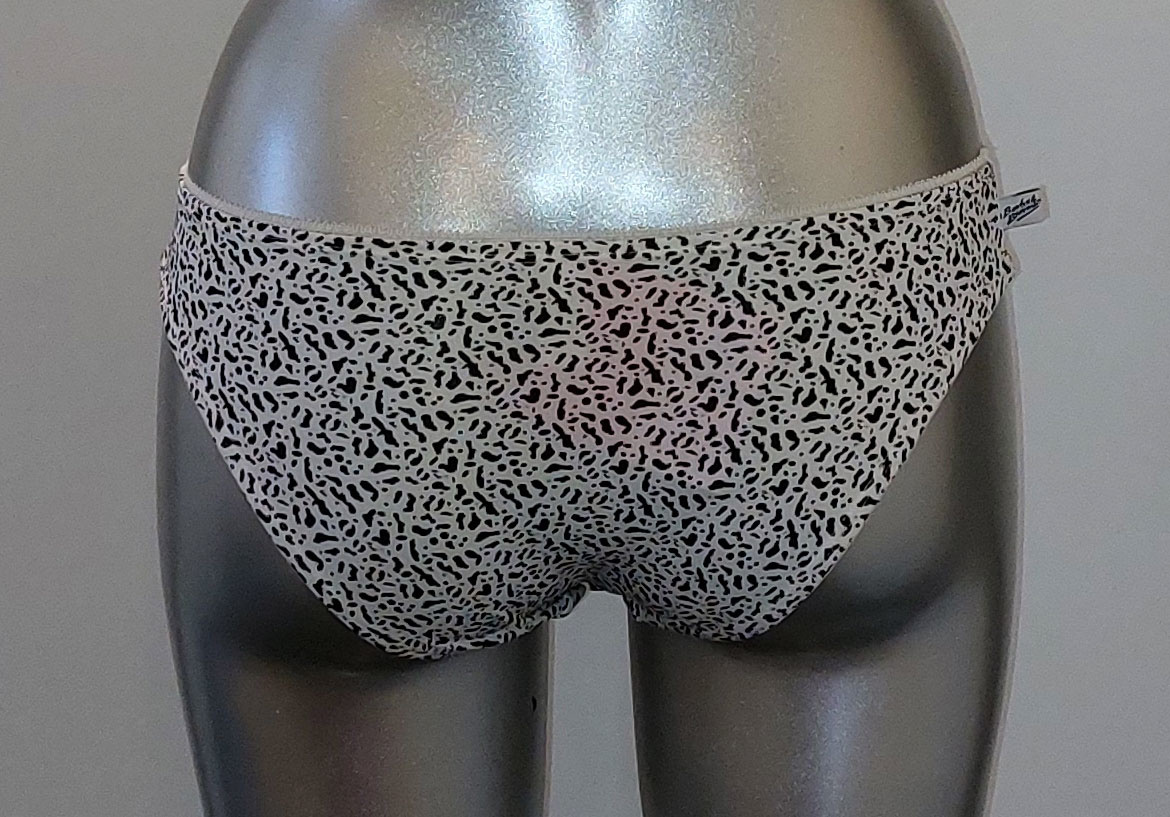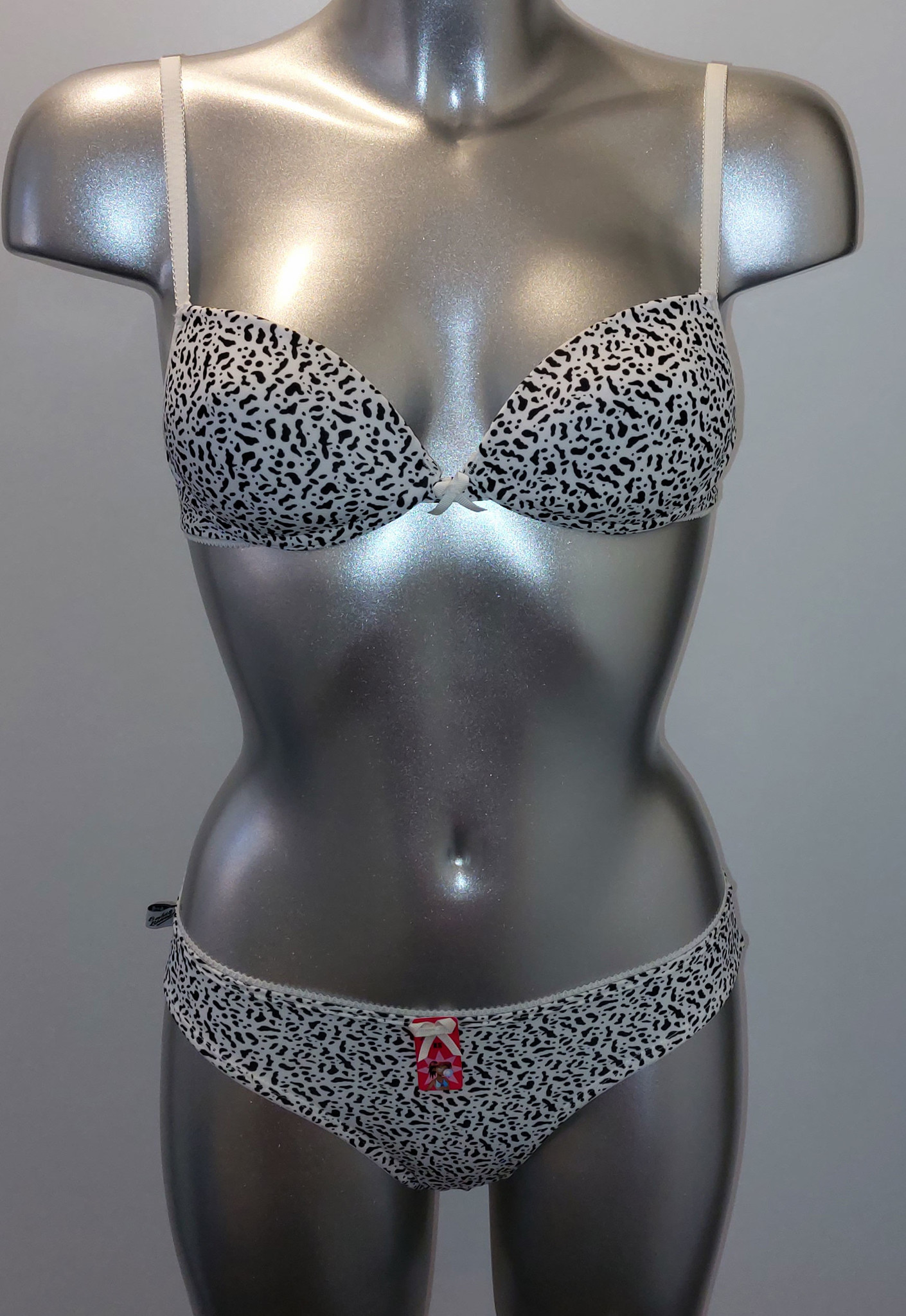 Uit de SALE collectie van Boobs & Bloomers Lani microfaser Bh zonder beugel & licht voorgevormde cup de mt A70, met bijpassende slip de mt 152. Kleur ivoor met zwarte animalprint.