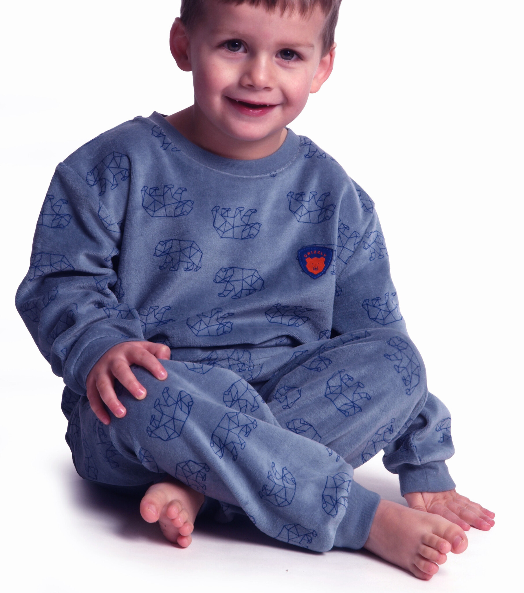 Lunatex zachte & lekker warme velours jongenspyjama kleur blauw met print ijsbeertjes, de mt 110 nog leverbaar.