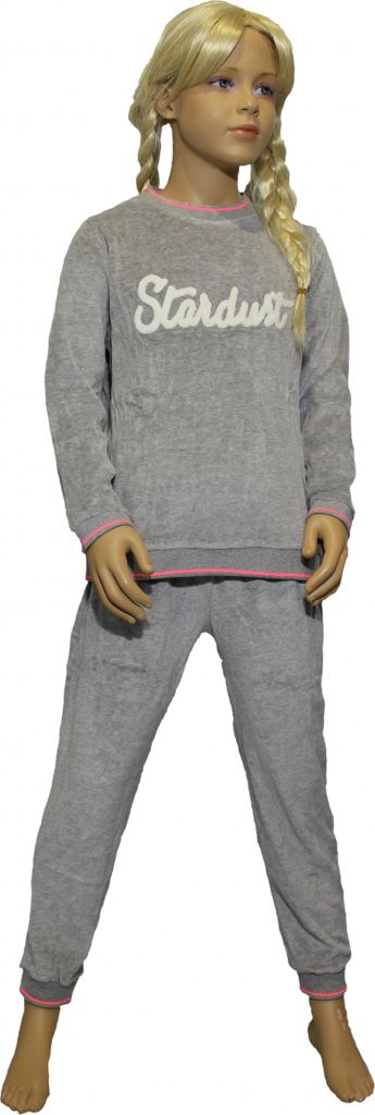 Uit de nachtmode collectie van Lunatex de Felicia velours meisjes pyjama kleur licht grijs mt 188 of antraciet grijs mt 152 t/m 188.