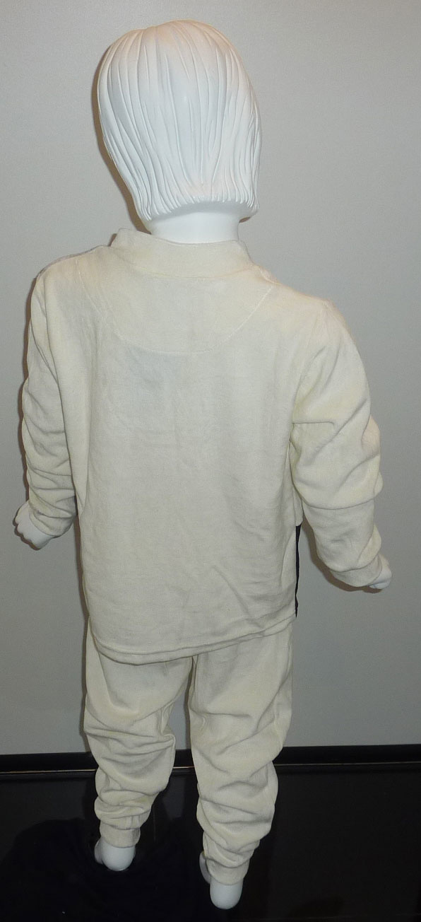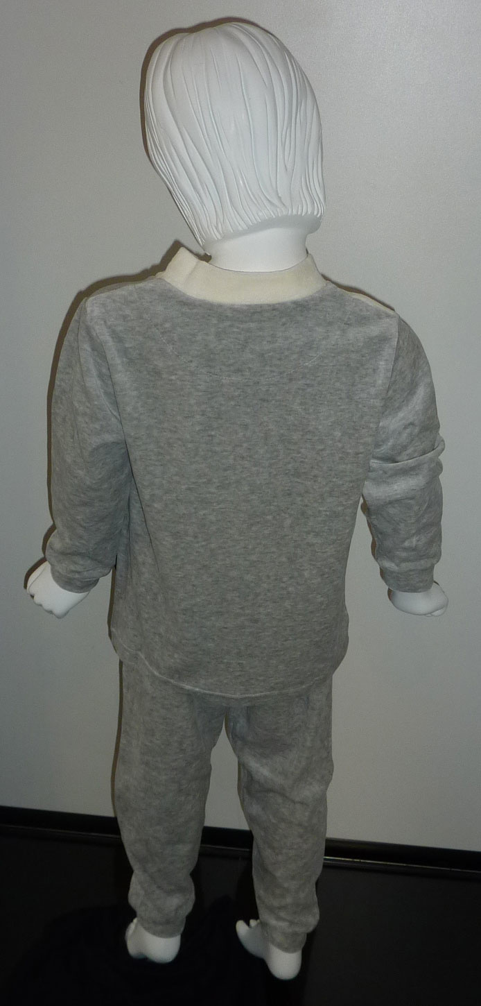 - Kiest u voor de grijze pyjama dan is het jasje & broek in hoofdkleur grijs (voor & achterpand en de mouwtjes) kiest u voor ivoor dan is het voor & achterpand en de mouwtjes in hoofdkleur ivoor, dit zelfde geldt voor de kleur zwart, dan is het broekje zwart & de mouwinzet samen met het achterpand.